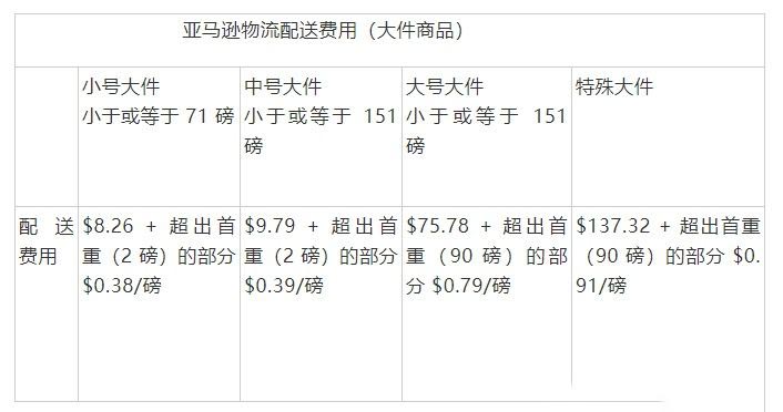 fba訂單配送費表一覽(包括標(biāo)準(zhǔn)產(chǎn)品和大件產(chǎn)品的收費標(biāo)準(zhǔn)):