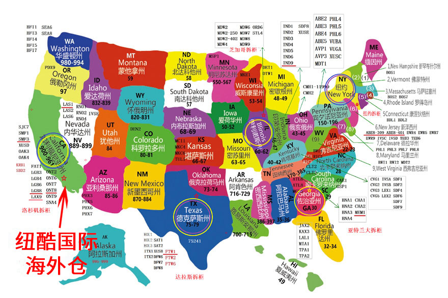 (PS:每個(gè)莊家的劃分可能有所區(qū)別,其實(shí)美東、美中、美西的劃分是為了方便頭程運(yùn)費(fèi)的區(qū)間劃分,比如4開(kāi)頭的郵編,空派部分分到美東去了)