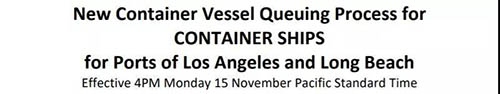 PMA 聯(lián)合Marine Exchange of Southern California 在美國時間11月15日推出LA/LB 碼頭集裝箱船排隊的新方法。新規(guī)要求所有的集裝箱船在離開LA/LB港前的最后一個碼頭時,申請掛港次序,在確定??縇A/LB碼頭前72小時內(nèi)方可進(jìn)入San Pedro 灣等待,在這之前,船必須在離LA/LB碼頭150英里的海域停留。